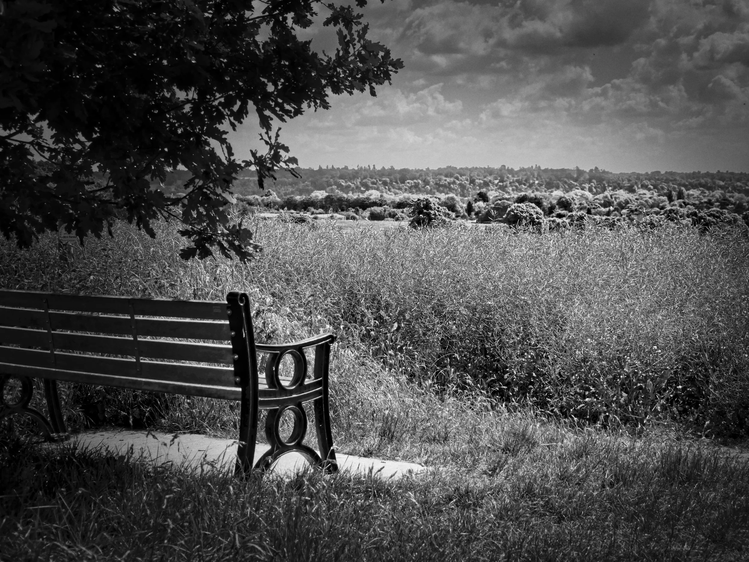 On one level, these benches and seats literally overlook the English countryside — quiet views across fields, woodland, and