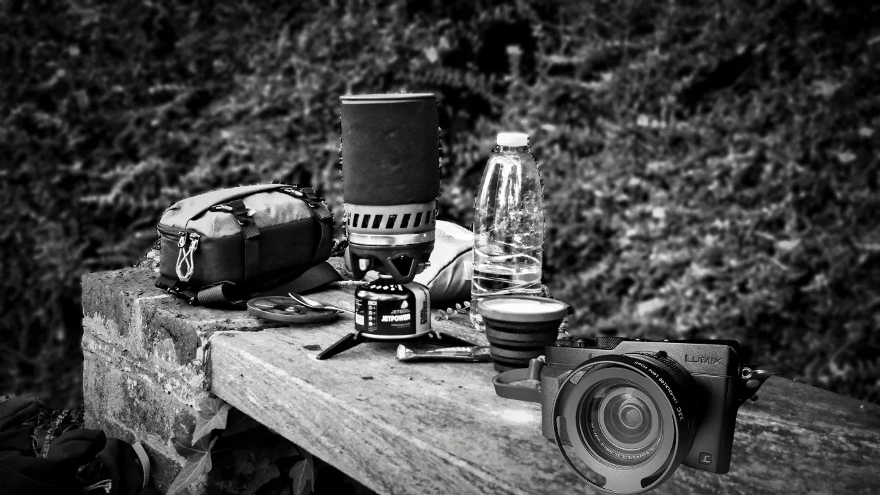 And since most of my photography happens while walking, the same idea carries over to what I wear and carry. My current walking boots are Skechers Relment Pelmo — £65 from Amazon — with built-in air-cooled memory-foam insoles. For the money, they’re the most comfortable and waterproof boots I’ve owned. My wet-weather and walking trousers are from Craghoppers, my down jacket is from Rab, and I cook on an OEX stove — similar to a Jetboil but half the price and just as good. Everything goes into a reliable Berghaus day sack — just a few items from my cache of hiking and camping kit.