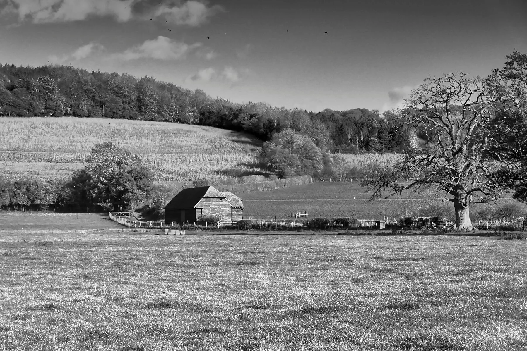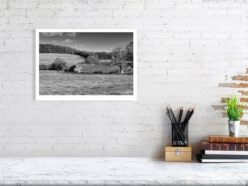 A small collection of black and white prints from the Chiltern Hills, along with my books.